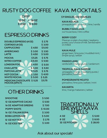 COME ON IN FOR CAFE DRINKS, HOUSE-MADE MOCKTAILS AND KAVA BY THE SHELL!COME ON IN FOR CAFE DRINKS, HOUSE-MADE MOCKTAILS AND KAVA BY THE SHELL!COME ON IN FOR CAFE DRINKS, HOUSE-MADE MOCKTAILS AND KAVA BY THE SHELL!COME ON IN FOR CAFE DRINKS, HOUSE-MADE MOCKTAILS AND KAVA BY THE SHELL!